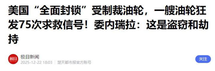 极目新闻:美国“全面封锁”受制裁油轮,一艘油轮狂发75次求救信号!委内瑞拉:这是盗窃和劫持